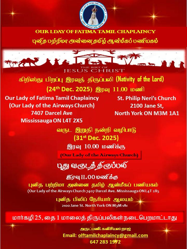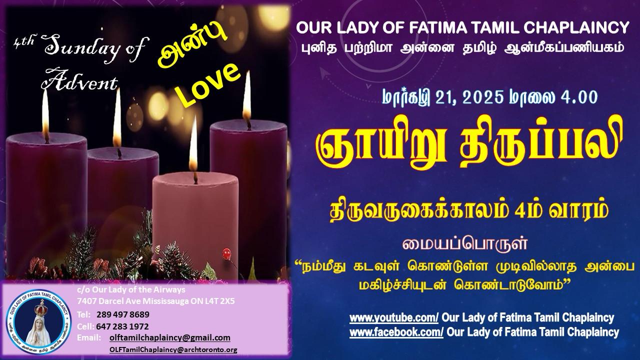 புனித பாத்திமா அன்னை ஆன்மீக பணியகம் மிசிசாகா கனடா ஞாயிறு திருப்பலி 21-12-2025 4pm Live